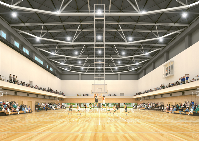 キャンパス北ゾーンに2026年春、新校舎が完成します。●オープンラボを備えたスポーツ工学・医工学・化学系・情報系・環境系の研究施設、●新体育館、●e-スポーツスタジオ、●ラーニングコモンズ——の教育研究施設のほか、「地域健康増進センター」や「産学官連携コーナー」など、地域と連携する拠点が整備されます。
