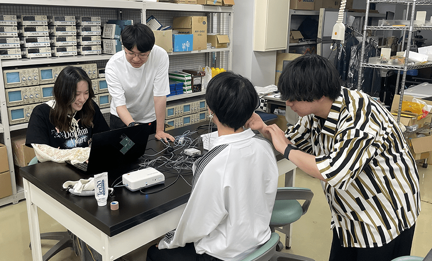 心理生理学系および動作解析に関する実験を対象とし、各種センサや計測装置の使い方、ヒトを対象としたデータの計測方法、取得したデータの解析手法およびデータの見方、解析した結果のまとめ方について学修します。