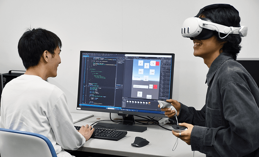 画像や音声・音響などのメディア技術を応用してVRやARなどの3次元的で複雑な映像表現手法について学びます。座学と演習を通してVR/ARについての実践的な知識やプログラミングの技術を修得します。
