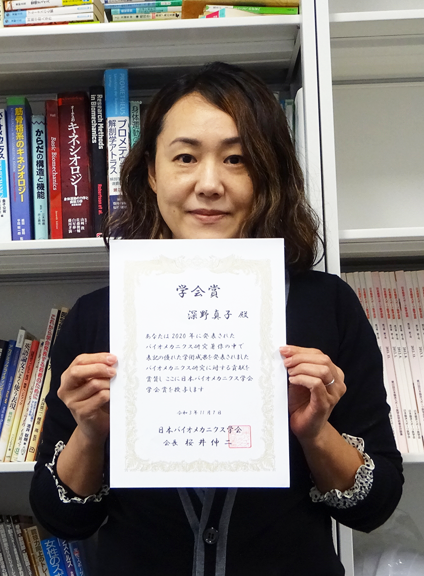 深野 真子 准教授が第27回日本バイオメカニクス学会大会にてJSB学会賞を受賞
