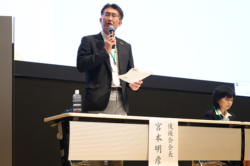 総会では、冒頭で宮本明彦会長が挨拶をし、「私も芝浦工大の学び舎を経験した者であり、非常に充実した学生生活を送らせていただきました。そうした中、いつかは大学に恩返しをしたいと考えておりました。ぜひ、皆様と力を合わせて、芝浦工大の学生のために後援会の活動を充実させたいと思っております」と話されました。