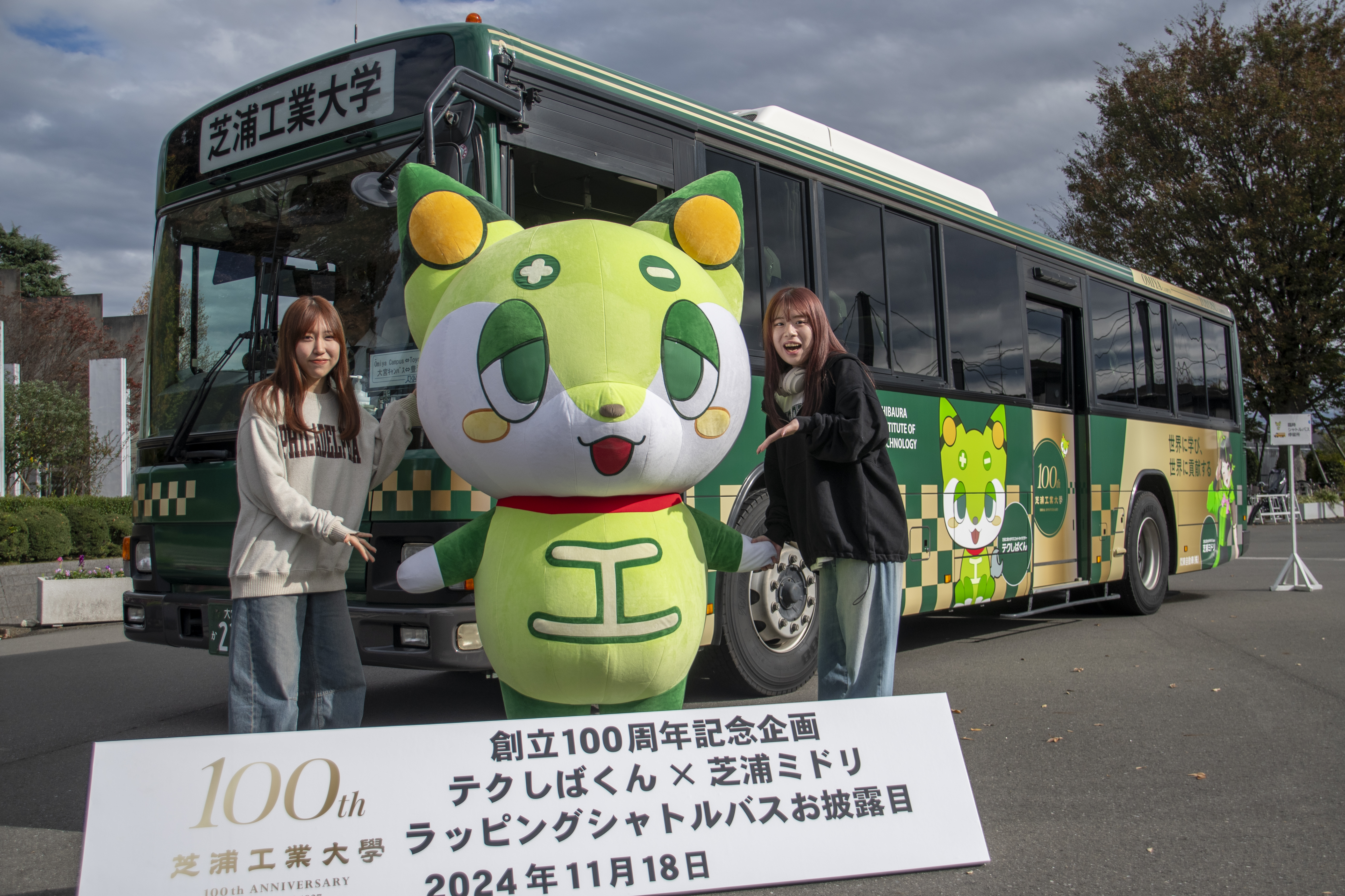 11月18日から、創立100周年記念デザインラッピングを施したシャトルバスの運行を開始しました。