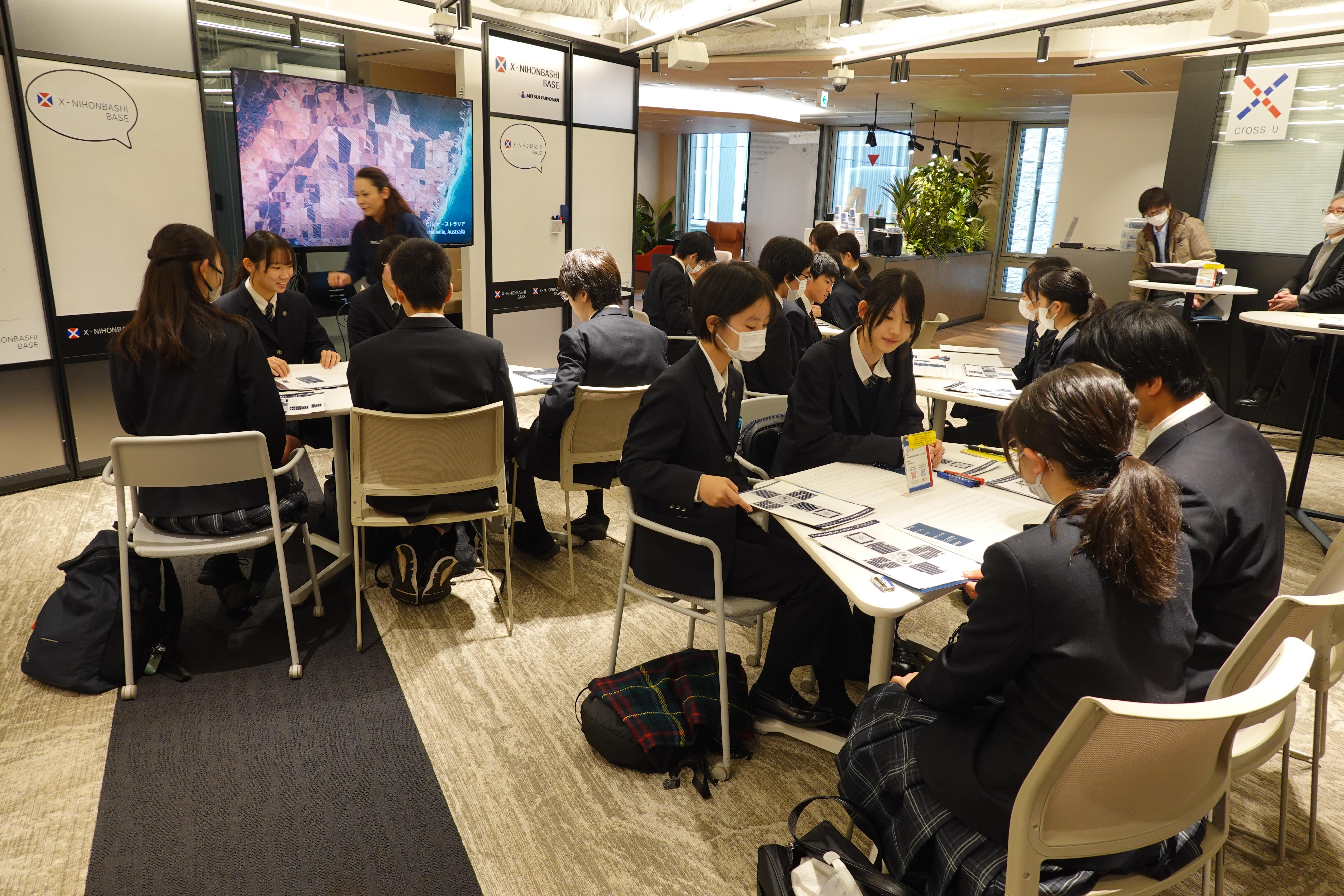 12月13日(金)は、芝浦工業大学柏中学高等学校、芝浦工業大学附属中学高等学校、昭和女子大学附属昭和中学校・高等学校の生徒が参加しました。 午前は日本橋の株式会社アクセルスペースホールディングスを訪問し、事業紹介や衛星ビジネスをテーマとしたワークショップを実施していただきました。午後は一般社団法人ライフサイエンス・イノベーション・ネットワーク・ジャパン(LINK-J)を訪問しし、LINK-Jの取り組みや施設のご紹介をいただきました。続いて、スタートアップ支援に携わる方から、学生時代の過ごし方や現在のキャリアに至るきっかけなど、将来の参考となる貴重な経験談をお聞きしました。
