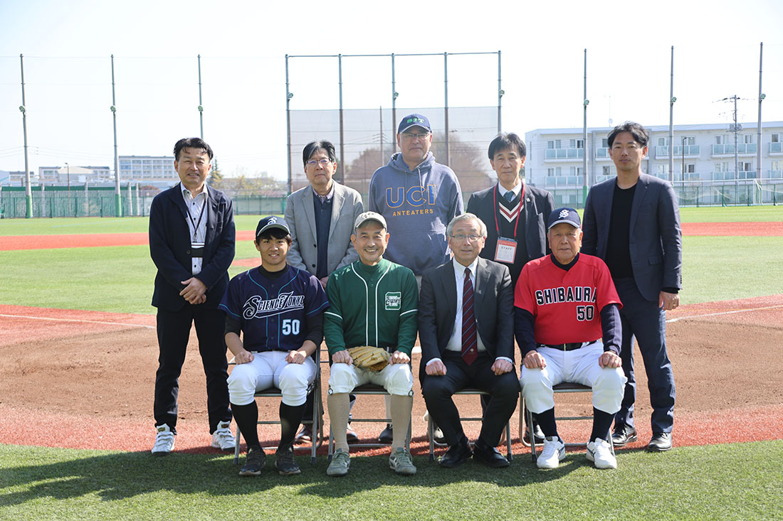 穏やかな春の日差しが降り注ぐ絶好の野球日和の中、試合に先立って山田 純学長が始球式を行いました。
