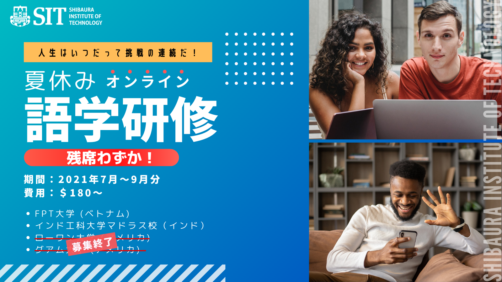 芝浦工業大学では、夏休み期間(2021年7~9月)に、海外の協定校と連携しオンライン語学研修プログラムを実施しています。既に約150名の学生から参加のお申し込みをいただいています。