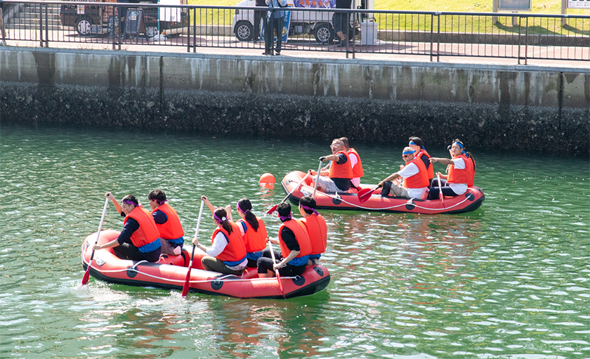 豊洲の各丁目からの参加者がゴムボートレースで競います!