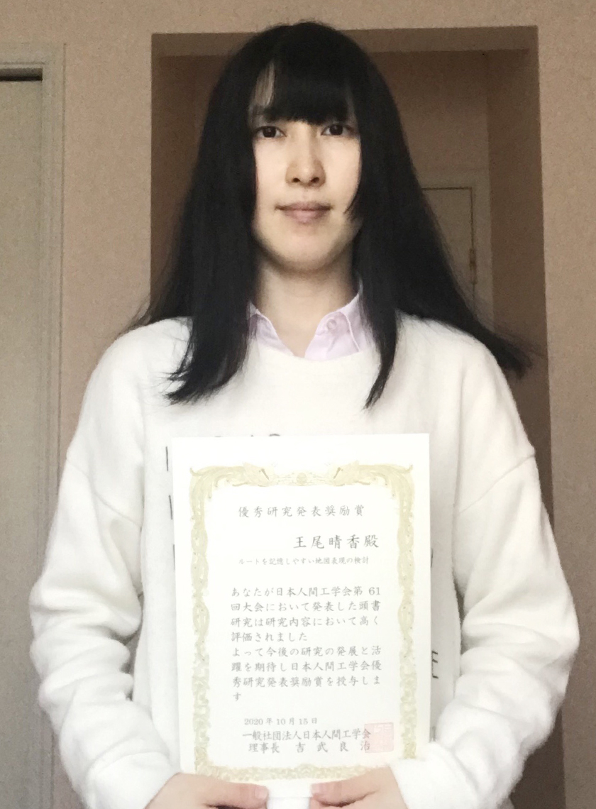 王尾 晴香 さんが日本人間工学会第61回大会(2020年度)で優秀賞を受賞